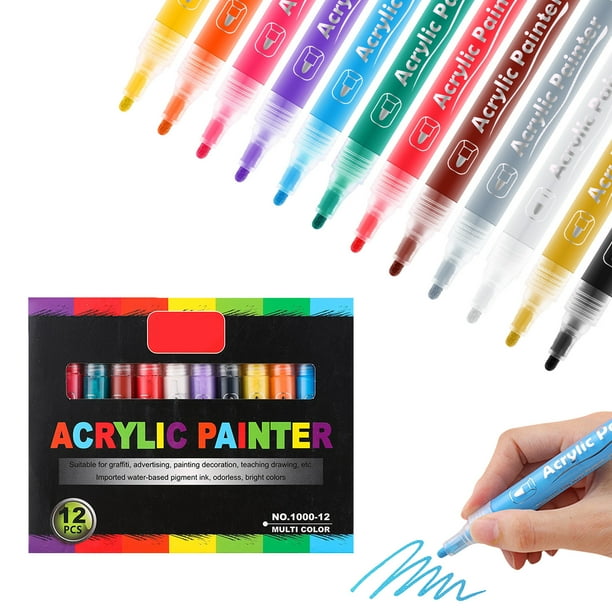 Lacyie 12pcs Acrylic Paint Pens Colorful Markers For Writing Painting Walmart Com